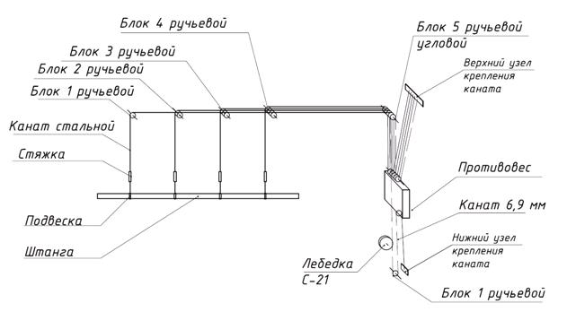 В остальном схемы декорационных подъемов аналогичны софитным.